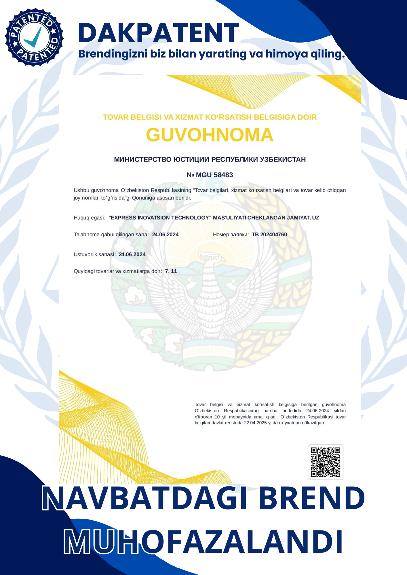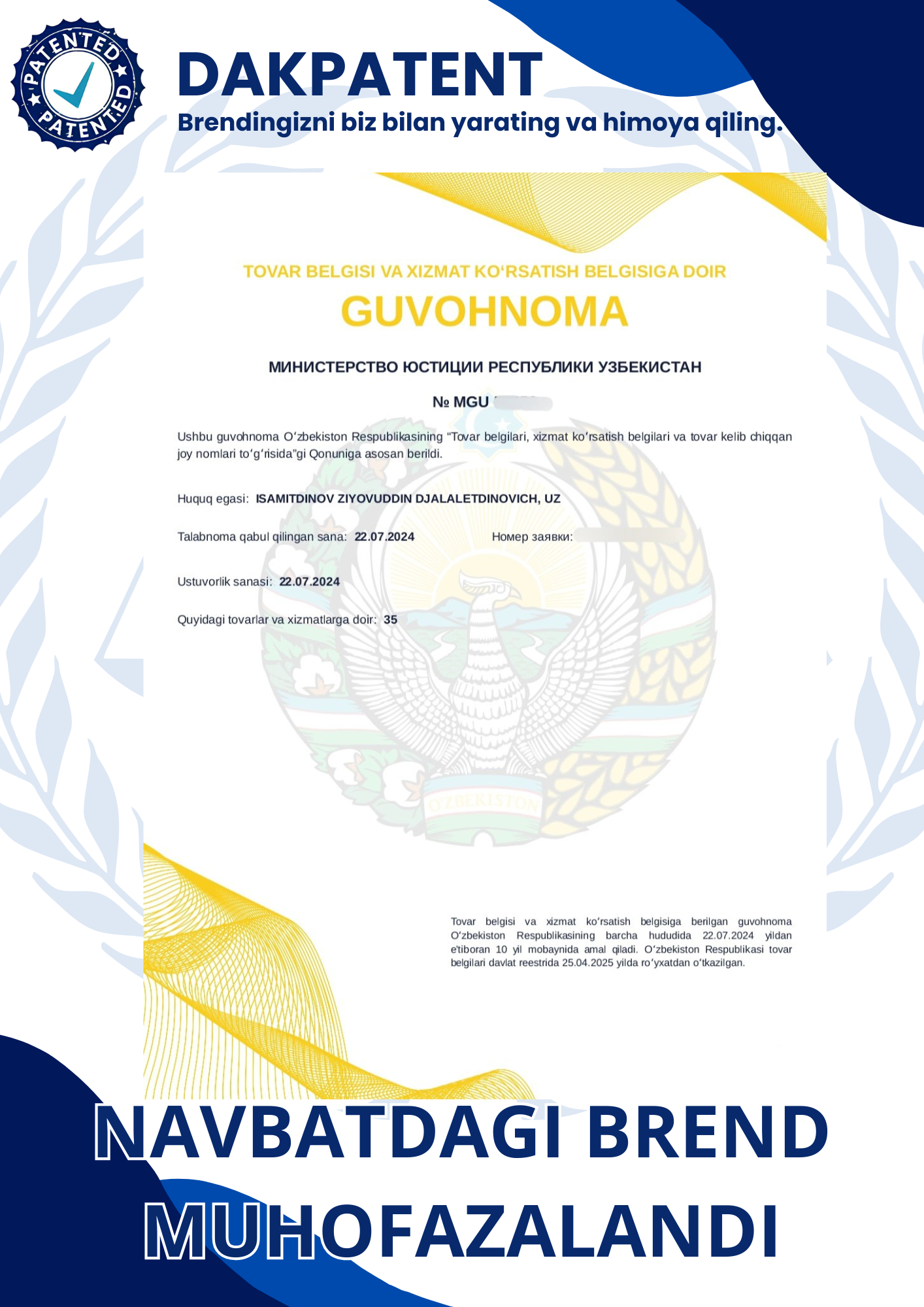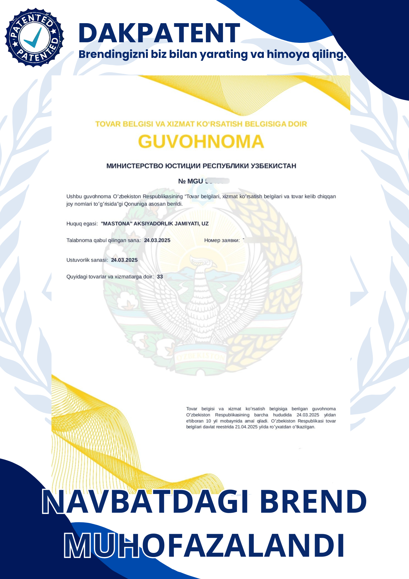 Ish vaqtlari | Dushanba-Shanba (9:00-18:00)