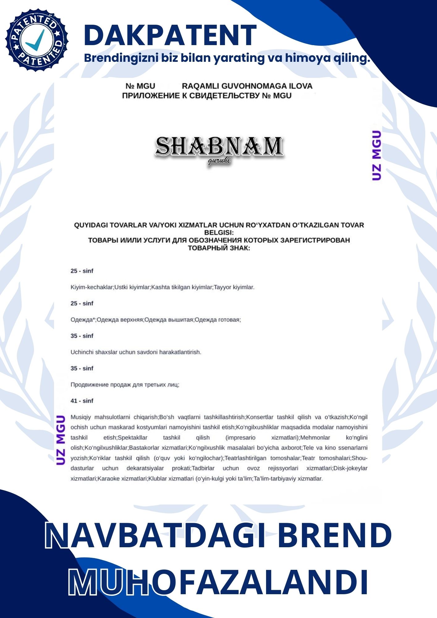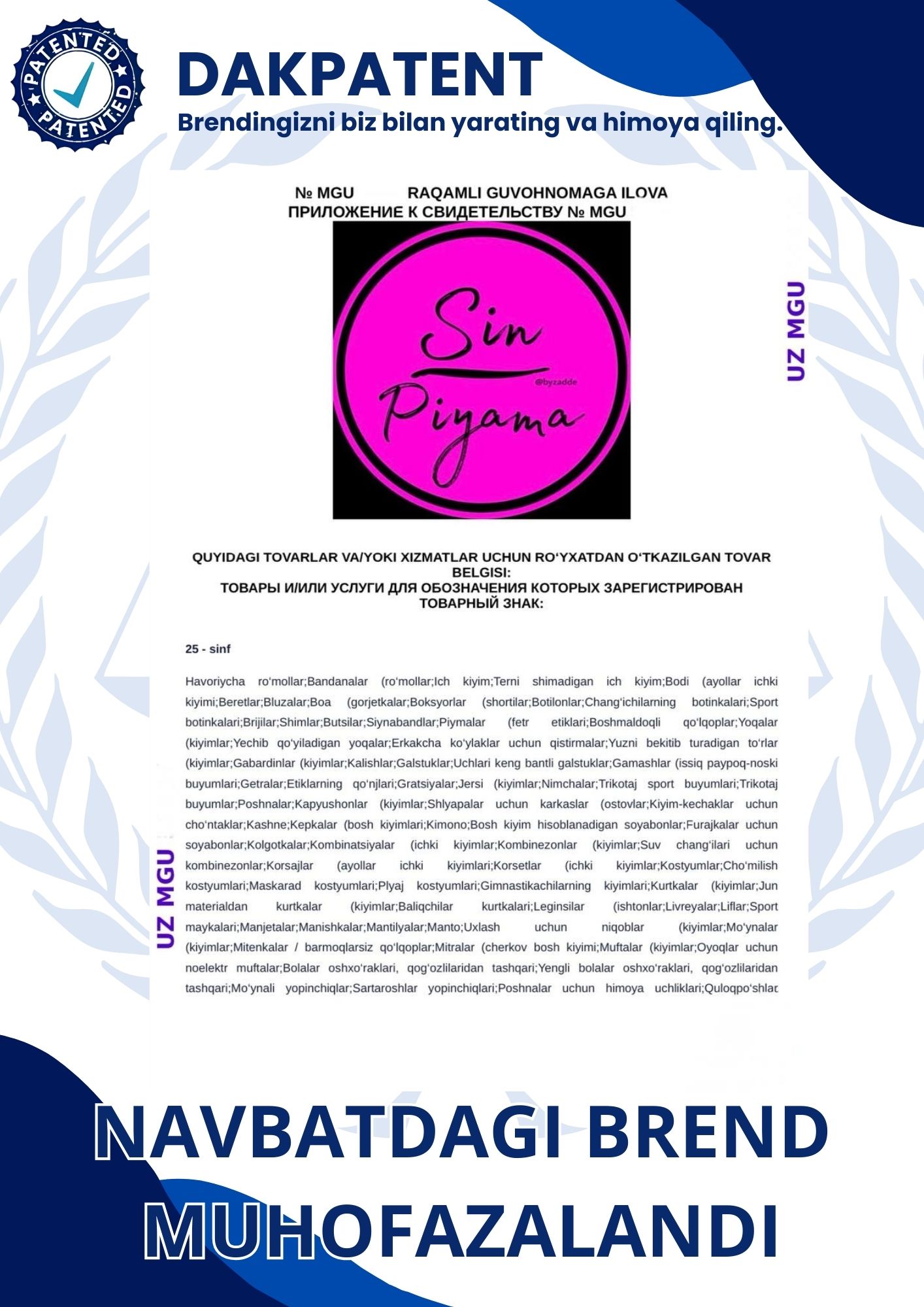 Biz tomonimizdan olib berilgan brandlar