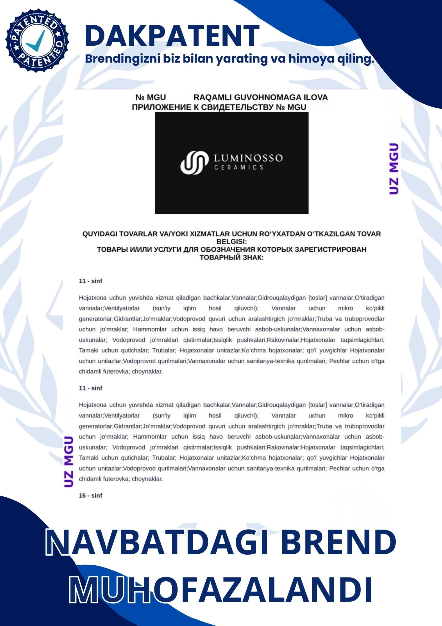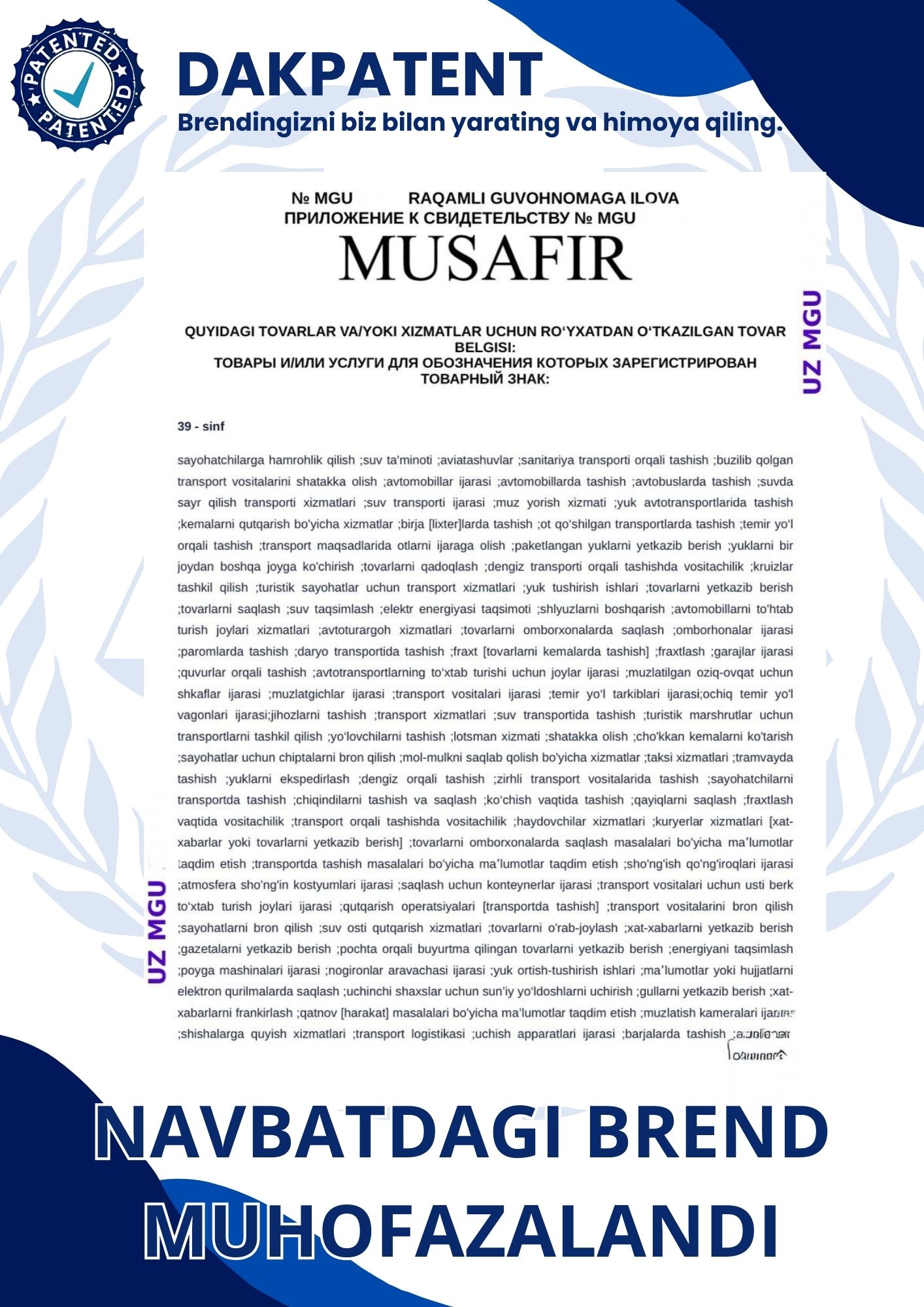 Biz tomonimizdan olib berilgan brandlar